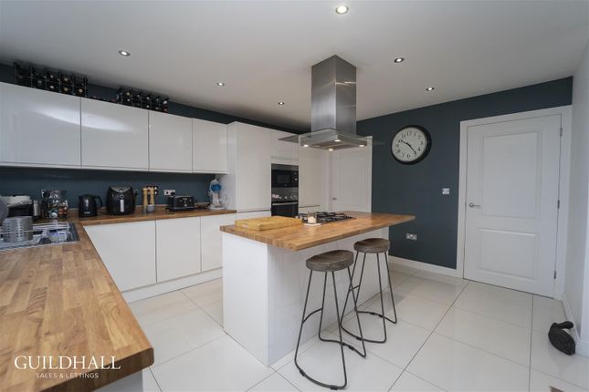 Prepare to fall in love with this absolutely stunning detached family home, nestled on a desirable corner plot within a highly sought-after family development. This is more than just a house; its the backdrop for your familys happiest memories, perfectly positioned for easy access to the commuter belt, making those daily journeys a breeze. Step inside and feel the immediate sense of space and warmth. The' 'spacious lounge' 'is an inviting sanctuary, perfect for cozy evenings or entertaining friends. Imagine the laughter and conversation flowing effortlessly into the' 'open-plan modern kitchen and dining room, a true heart of the home designed for both culinary creations and cherished family meals. Practicality meets style with a' 'rear porch' 'leading to an' 'impressive utility room, ensuring laundry day is anything but a chore. Plus, the' 'garage storage room' 'offers ample space for all your familys gear and hobbies. The ground floor also boasts a' 'sleek, modern shower room, adding convenience and a touch of luxury. Upstairs, youll discover' 'four generously proportioned double bedrooms, each offering a peaceful retreat for every member of the family. Two of these rooms benefit from' 'fitted storage, making organization a dream. The' 'master bedroom' 'is a true indulgence, complete with its own private' 'en-suite bathroom. The' 'fantastic main bathroom' 'is a showstopper, featuring a luxurious' 'four-piece suite' 'that promises spa-like relaxation after a long day. Outside, the magic continues. The' 'beautiful and secure rear garden' 'is a private oasis, perfect for children to play freely, summer barbecues, or simply unwinding in the sunshine. To the front, a' 'private driveway' 'provides ample parking, complemented by a' 'spacious lawn' 'that adds to the propertys impressive curb appeal.