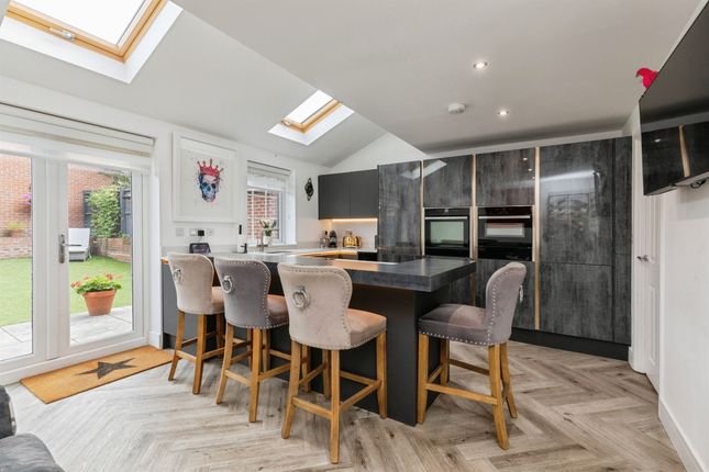 Window to rear aspect, overlooking rear garden. A modern fitted kitchen with a combination of wall and base units with worktops over and stainless steel sink and drainer. Integral electric double oven and hob, built in dishwasher, built in fridge/freezer, lvt flooring, radiator and double French doors leading out to the garden.