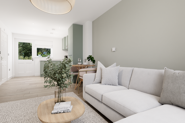 Enviably located just above the main street within a quiet leafy cul-de-sac, this significantly upgraded end terraced villa offers exceptionally light and spacious accommodation in move-in condition. The large reception hall is a welcoming first impression and leads through to the superb sitting/dining room with lots of space for family and friends. A picture window and French doors flood the room with light and take advantage of the open outlook. The hall also gives access to a stunning contemporary kitchen which is both practical and stylish and comes complete with integrated appliances. A useful WC/cloakroom is to the right of the front door. Upstairs, the unusually spacious landing offers home office potential and has a boxroom off. There are two generous double bedrooms (one with wall-to-wall fitted storage) and a fabulous bathroom with shower. There is excellent storage space throughout, and additional benefits include gas central heating and double glazing. To the front of the property there is a private low maintenance garden, and a driveway leading to the carport. The rear garden leads onto communal grounds and again is low maintenance, the perfect spot to enjoy long summer evenings.