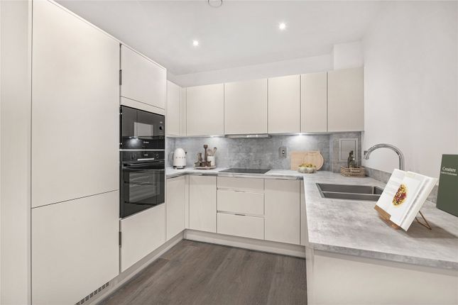 This lovely home is located on the first floor of this well maintained, purpose built block located just off of the very sought after Elms Road. There is a a spacious West facing semi open plan reception room, a separate modern fitted kitchen with cream gloss units and appliances including a gas hob, electric oven, freestanding washing machine, under counter fridge and separate freezer. There are two double bedrooms both with fitted storage and a partially tiled family bathroom with bath, overhead shower, separate walk in shower cubicle, W.C and basin.