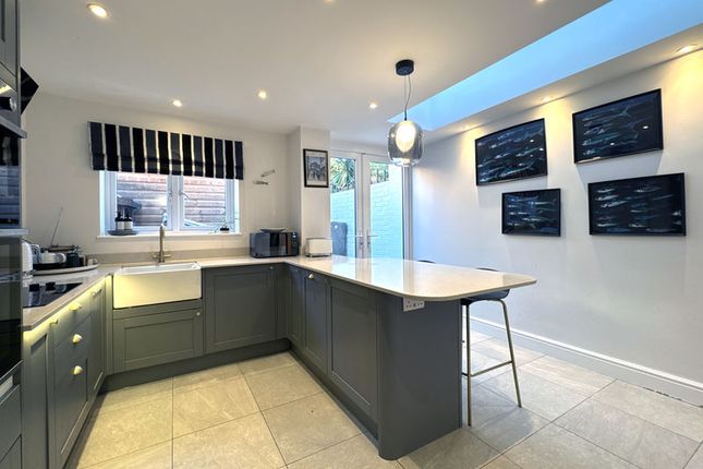 The accommodation briefly comprises a welcoming entrance hallway, which offers a series of fitted storage, recessed shelving and attractive wood effect flooring that continues towards the bedroom accommodation. The living room is accessible from two sides with partly glazed doors to the side and rear of the room. There is coal-effect gas fire with a marble surround and hearth and a westerly facing window that overlooks the front. The dining area adjoins the rear of the living room which connects to the kitchen, sun room and the rear of the hallway. The kitchen offers an extensive range of base and wall mounted units including a selection of integral appliances and a window that overlooks the front. The sunroom is another spacious reception area with stone tiled flooring and a lantern light above that allows natual light to flow into the room and the surrounding spaces. Doors to either side of the sunroom provide access to each side of the property and another door offers access to the rear of the garage.