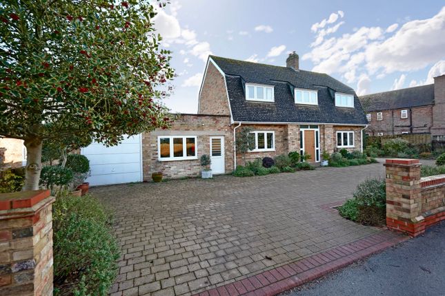 Approached from the High Street through wooden farm gates, the sweeping driveway offers ample off-road parking before continuing to the main entrance and an oversized detached double garage, with additional garden areas flanking the drive.
