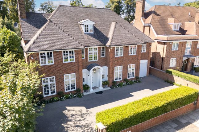 The principal bedroom occupies an entire floor, creating a luxurious private suite. Above are four further bedrooms and a family bathroom. At garden level, a separate entrance leads to an additional bedroom with en suite bathroom, a TV area, guest cloakroom, utility space, and a wine cellar, making this level ideal for guests or staff accommodation.