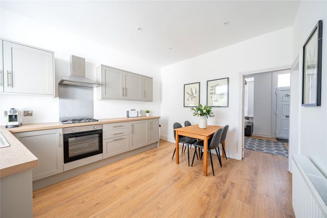 The entrance doors gives access to a lovely, spacious hallway with a window to the side elevation and space for coats, bags, shoes, etc. A staircase leads up to the first floor and doors lead through to a large 22'4" x 11'8" living/dining room with bay window to the front allowing in lots of natural light and large window to the rear with pleasant garden views. A feature marble fireplaces houses a gas fire and there's ample sofa and dining space. The kitchen is accessed at the far end of the room and has a window overlooking the rear garden and door out to the side. Fitted with oak Shaker units with complementary worksurfaces, tall fridge freezer, cooker and a washing machine. Superb scope here to knock through and modernise.