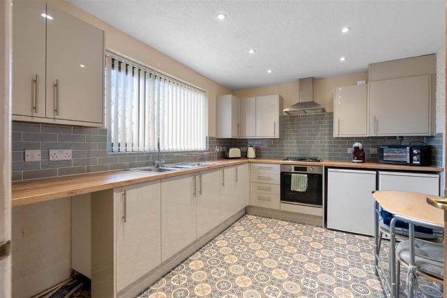 The kitchen has a built-in oven and hob, providing practical facilities for everyday cooking. A side window offers additional light, and a door leads to a useful lean-to, which features windows and a door providing direct access to the garden, perfect for enjoying the outdoors or for additional storage.