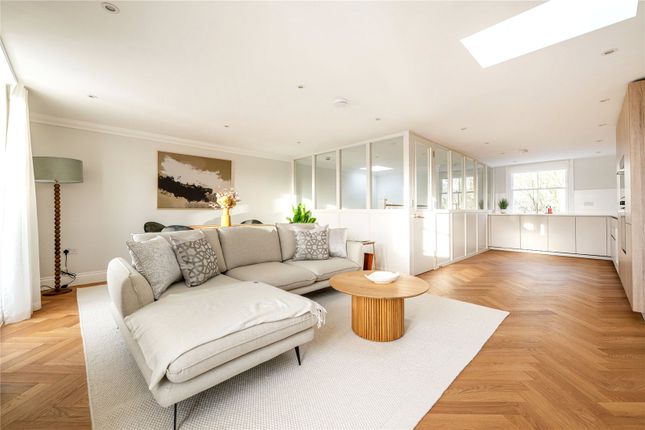 At the heart of the apartment lies a generous reception and living room, centred around an elegant fireplace which creates a warm and refined entertaining space. The layout flows seamlessly into a contemporary, fully fitted kitchen.
