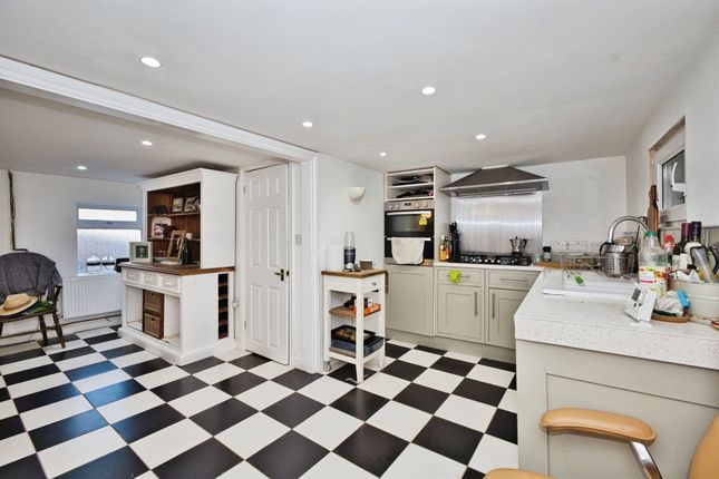 With double glazed window to the side aspect and electric heater. Floor laid to farmhouse slate floor tiles and a wooden open staircase rising to the first-floor landing with panelled latch door under to built-in storage cupboard. Focally is an open fireplace inset with woodburning stove with exposed flue. Stripped wooden cupboard doors open to built-in cupboards. Doorway through to: