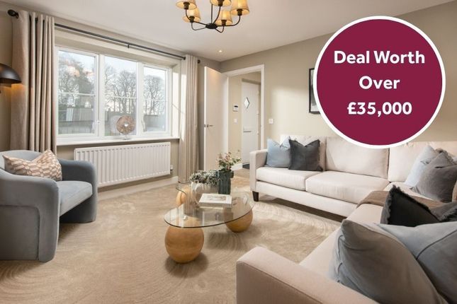 To the front, the gardens are designed for low maintenance, featuring lawn, box lavender borders, and a stone-flagged pathway leading to the rear.