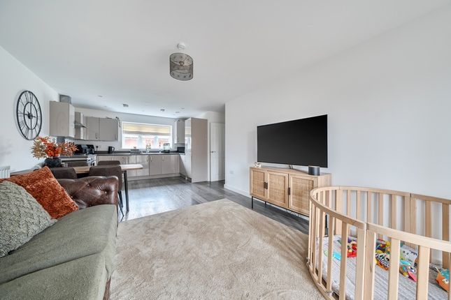 The apartment itself is offered with no onward chain and can be reached via either lift or stairs. Stepping through the front door, you’re greeted by a welcoming hallway with a generous storage cupboard - perfect for coats, shoes, and everyday essentials. Neutral carpeting runs throughout the main living areas, giving the home a fresh and comfortable feel. The bright living-dining room offers plenty of space for both seating and dining furniture, with pleasant views adding to its appeal. The adjoining kitchen, partially open to the living area, is well designed with a range of wall and base units and offers scope for personal touches.