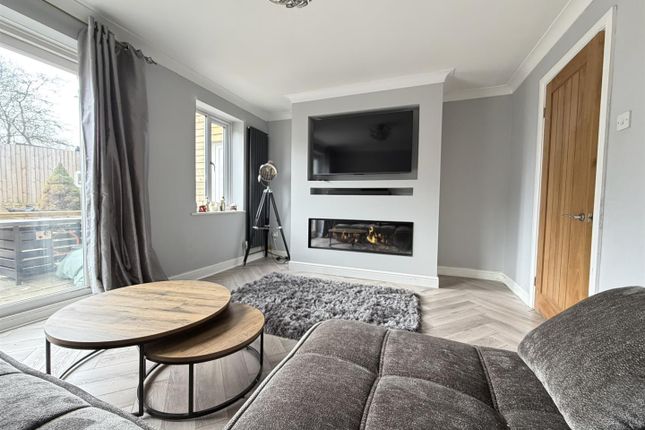 The sitting room is a bright and stylish space, enhanced by modern wall panelling and a wall-mounted TV point.