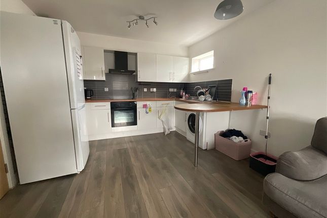 Double glazed window to front, fitted kitchen comprising sink & drainer set in roll top surfaces with tiled splashbacks and range of eye and base level units, built in high level oven and separate hob, space for further appliances.