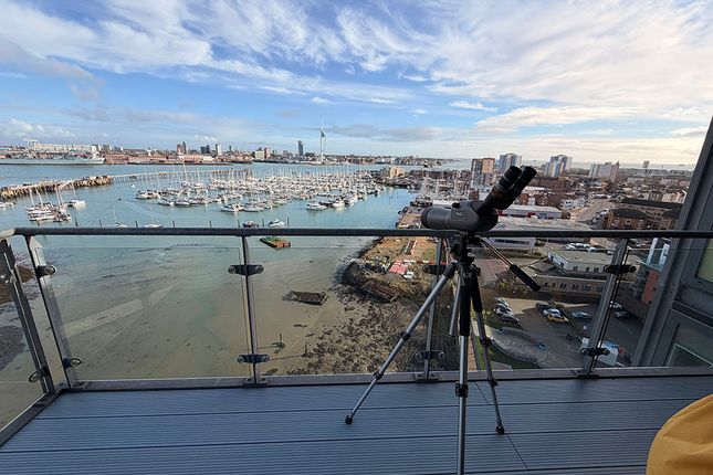 The apartment has been thoughtfully improved by the current owners and features a spectacular lounge/diner with panoramic views over Portsmouth Harbour towards the Spinnaker Tower. A door from the lounge opens onto a large decked balcony, and the open-plan kitchen comes complete with integrated appliances and an island unit.