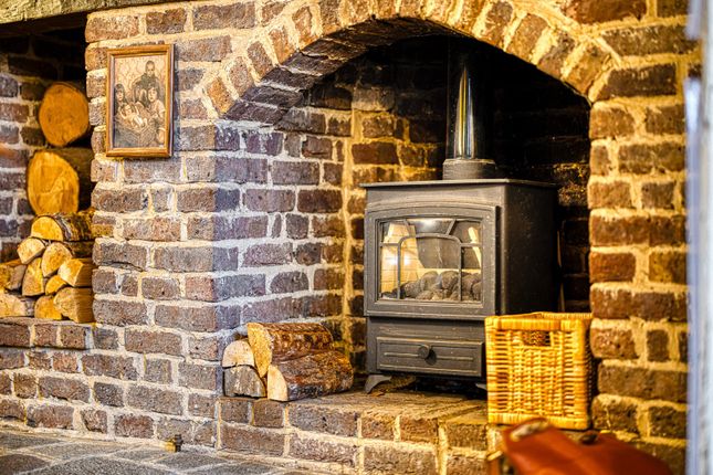 Modern fitted kitchen comprising a range of eye and base level units complemented by fitted work surfaces and matching upstands with inset one and a half bowl sink and swan neck mixer tap. Space for gas cooker with stainless steel splashback and extractor hood above. Integrated dishwasher. Space for fridge/freezer. Tiled flooring. Double glazed windows to side and rear aspects. Double glazed door to rear. Door to :