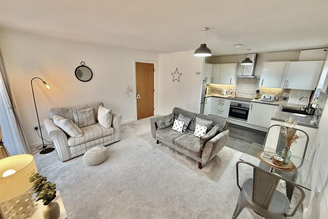 Upon entering the apartment, a welcoming hallway provides access to all principal rooms, creating a practical and well-balanced layout. To the front of the property is a stunning open plan lounge, dining and kitchen area, a superb sociable space designed for modern living. Sliding patio doors open onto a Juliet-style balcony, offering delightful far-reaching views.