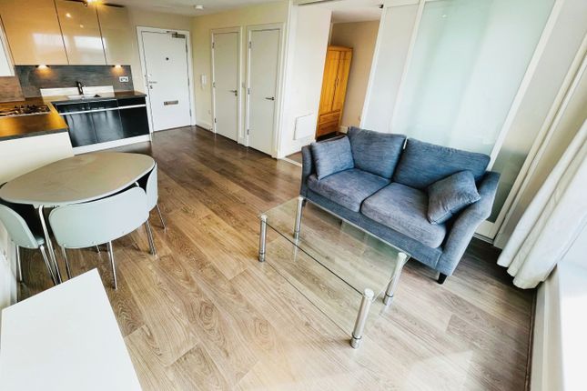 This large one bedroom modern apartment boasts an open plan living space. The kitchen has built in appliances including oven, hob and hood. The three piece bathroom is tiled with a shower over the bath.