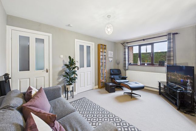 An inner lobby with useful store cupboard leads through to the spacious dual-aspect living room, beautifully presented and filled with natural light, creating a bright and welcoming living space.