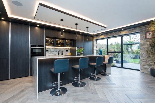 Upstairs, the property offers four double bedrooms. Two benefit from their own en-suite facilities, while the third enjoys direct access to the main family bathroom, making it ideal for guests or older children. In total, the home offers three bathrooms, all finished to a high standard.