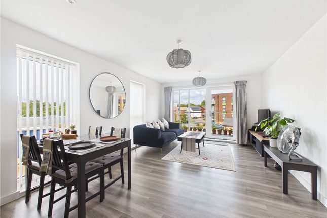 Upon entering the apartment, you are welcomed by a spacious hallway that serves as the spine of the home, leading into a magnificent open-plan kitchen and living area. This expansive room is designed for both the quiet comfort of daily life and the flair of evening entertaining, with floor-to-ceiling glass doors that open directly onto a private balcony. This outdoor space provides a peaceful vantage point to enjoy the fresh air and the evolving skyline of this historic site. The internal layout is further enhanced by two generously sized double bedrooms. The principal bedroom features its own private ensuite shower room, while the second bedroom is served by a large, contemporary family bathroom. Practicality has not been overlooked, with a dedicated utility and airing cupboard and a secondary storage cupboard ensuring the living areas remain sleek and clutter-free.