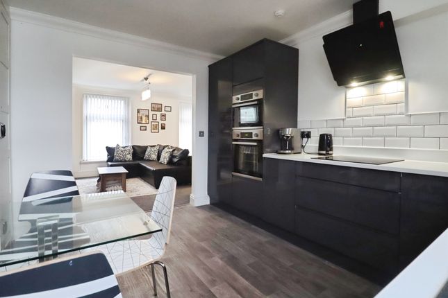 The newly fitted kitchen is generously sized and features two double-glazed windows, a range of contemporary base units, solid stone worktops, quality integrated appliances, stainless steel sink, spot lighting, and space for additional appliances.