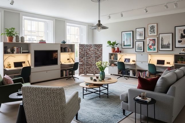 Situated on the second floor with west facing views, the apartment offers approximately 779 sq ft of thoughtfully designed accommodation. The layout is ideal for owner occupiers, with a generous living area complemented by extensive built in storage throughout. Finished to a high specification, the property includes Siemens integrated appliances, comfort cooling, underfloor heating, and floor to ceiling glazing that allows natural light to flow seamlessly from the living space into the spacious double bedroom via the winter garden.