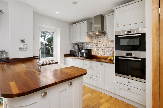 Kitchen 10' 2" x 9' 2" (3.1m x 2.79m) Fitted Shaker style kitchen with range of base and wall units in white finish. Roll-edge worktop with matching upstand and inset stainless steel sink. Space for slot in electric cooker. Space for under worktop fridge. Tiled floor. Radiator. Skylight window. Internal window to utility room. Recess spotlights. Stable style door to utility room. Step up into the garden room area.
