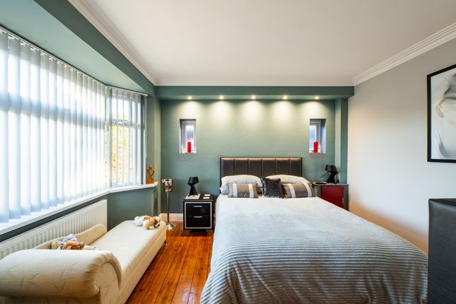 Bedroom to front aspect with double glazed bay window with fitted shutters, fitted carpet, inset spotlights, radiator and door to en-suite.