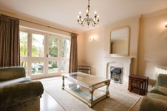 The living room is a generous reception space with bay window overlooking the private garden, offering ample space for both sitting and dining areas.