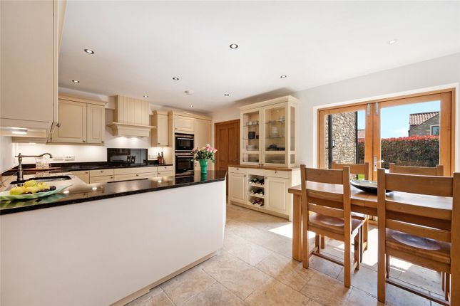 An extensive range of high and low level kitchen units in cream shaker style with kitchen island, complimentary granite worktops and splashback. Integrated appliances include two induction hobs, two ovens and extractor hood over. Space for an American style fridge/freezer. Farmhouse style sink with tap. Twin Velux double glazed skylights. Access to utility room and the boot room. Tiled flooring.