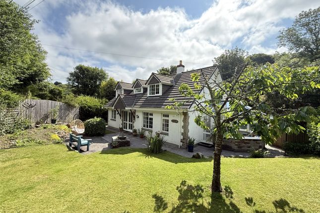 An impressive detached spacious attractive individually designed part slate stone fronted family residence in a tucked away position enjoying far reaching views of the countryside and out to the coastline with a back drop of fields behind this impressive designed family home. Gated driveway with ample parking and large double garage within well maintained formal gardens and internally offers spacious accommodation, front porch, large entrance hallway, light and spacious front to back lounge, downstairs shower room, dining room and kitchen plus utility with large landing. Four double bedrooms, two en-suites and family bathroom. Underfloor Heating to the Ground Floor. Viewing is highly essential to appreciate its fantastic position, spacious accommodation, views and surroundings. EPC - B