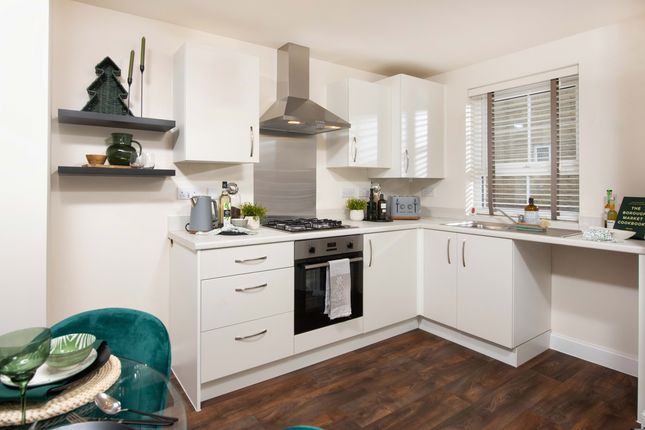 A charming breakfast kitchen overlooking the garden, offering a bright and airy feel. Fitted with modern shaker-style units, warm wood effect worktops and attractive open shelving, the space also benefits from a breakfast bar for informal dining and a door providing direct access outside.