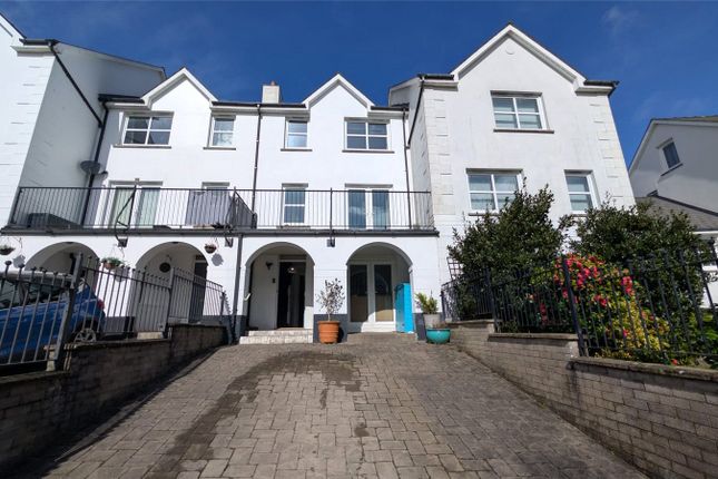 Cork tiled flooring, part tiled walls, hand basin, low flush toilet, bath, shower double glazed uPVC window to the rear.