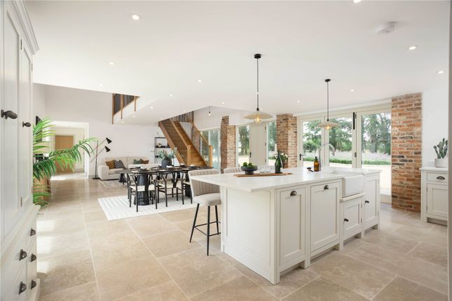 To the first floor, a spacious landing provides access to five well-proportioned bedrooms, three of which are served by their own en suite shower rooms. There is also a family bathroom fitted with a bath and overhead shower, along with useful built-in storage throughout the level.