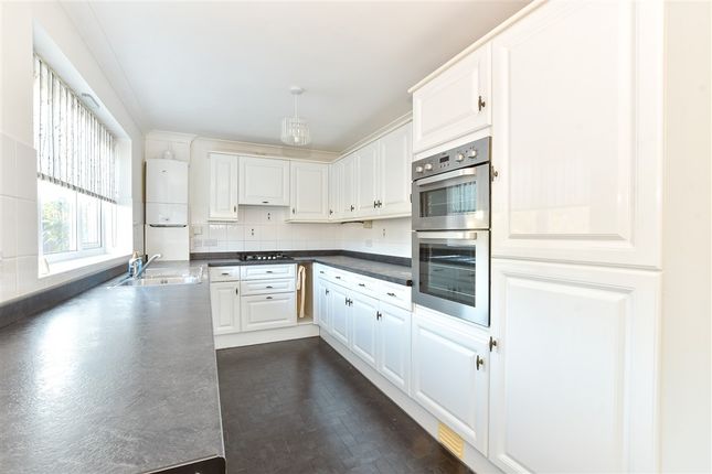 Modern style kitchen with ample floor and wall mounted storage units. Beautiful views out over the garden. Free standing oven and two ring hob with extractor hood overhead, space for fridge/freezer. Work surface with 1 1⁄2 sink and drainer. Small breakfast bar.
