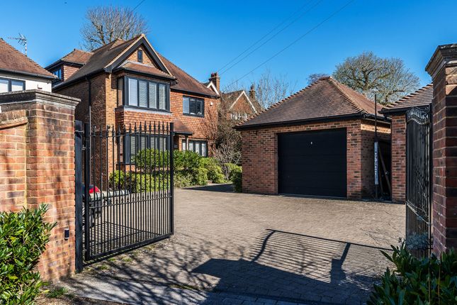 - Outside, the landscaped garden is mainly laid to lawn, bordered with mature trees and shrubs, and includes a large terrace perfect for entertaining. A gated driveway offers parking for up to three cars.