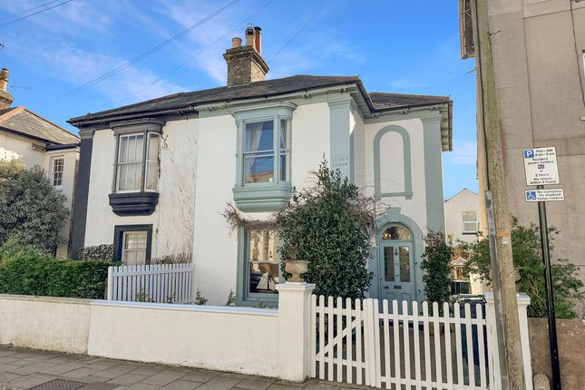 The kitchen is well arranged with a range of fitted units and generous worktop space, positioned to connect directly with the dining area, making it ideal for both everyday living and entertaining. A door leads out to the side path and garden.