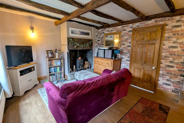 Spacious living room with multi fuel burning stove, double glazed window and Upvc door to the rear feature panelled walls and radiator.