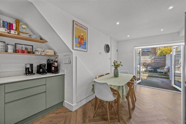 Gorgeous two bedroom, two bathroom split level maisonette with its own private garden, set on the quiet, tree-lined Grosvenor Terrace. Ideally positioned within easy walking distance of Kennington and Oval stations, with quick access to Camberwell Road for buses into the West End and the City. Entered via its own ground floor front door, stairs lead up to a bright first floor where the kitchen and living space have been opened up to create a generous, open-plan entertaining area, complete with brand new appliances. A modern family bathroom sits on this level. Upstairs, you’ll find two well-proportioned double bedrooms, a further shower room and WC, plus useful landing storage. From the half landing, an external staircase leads down to the private rear garden. Finished to a high standard throughout, this is a well thought out home offered chain free with a long lease.