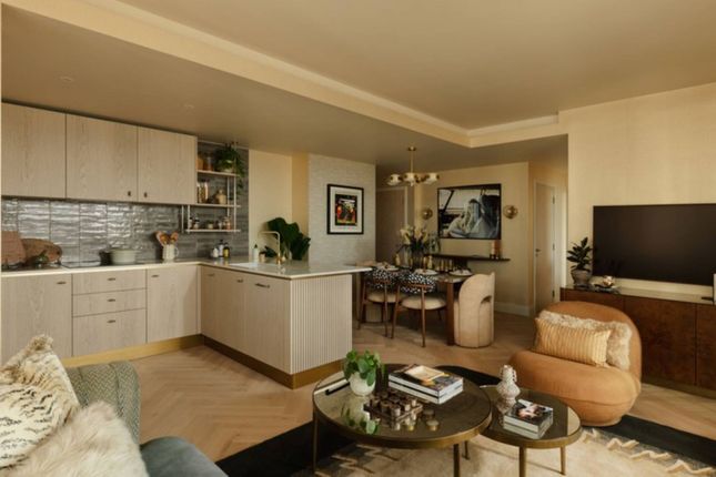 The accommodation is centred around an impressive open-plan kitchen and reception room, creating a superb entertaining space with a contemporary finish. There are two generous double bedrooms with ample fitted wardrobe space, complemented by two modern bathrooms and an additional guest cloakroom. Underfloor heating to the bathrooms adds a further touch of comfort and quality.