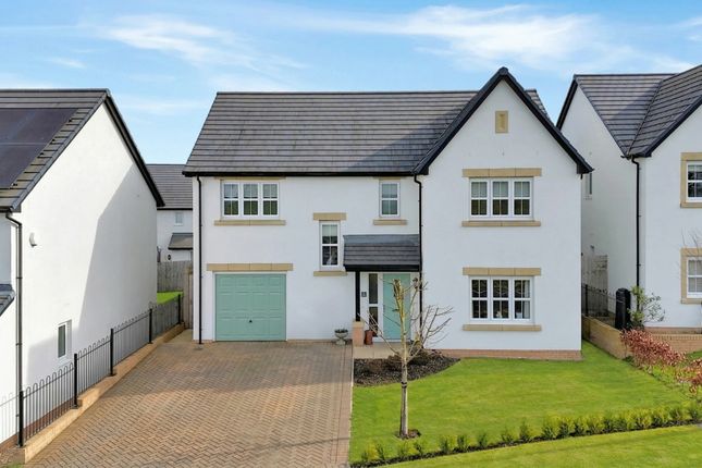A generous driveway approaches the property and garage, providing parking for three to four vehicles. The front garden is neatly laid to lawn and enclosed by mature hedges and shrubs, offering excellent privacy. Side pathways on both sides of the home give convenient access to the rear