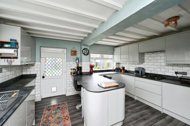 4.38m x 3.61m (14' 4" x 11' 10") A range of wall and base units with work surfaces incorporating an inset 1.5 stainless steel sink & drainer unit. Integrated appliances including electric oven, 5 ring gas hob, extractor fan and pantry cupboard. Tiled flooring, partially tiled walls, uPVC double glazed window to the rear, radiator, door to sitting room/bedroom 5 and uPVC door to the rear garden.
