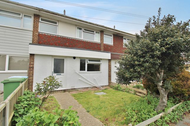 There is parking for 2–3 cars on the forecourt and two sheds ideal for storing the patio chairs and sailing gear. One houses the gas combi boiler. Paving leads down the side of the chalet to a west-facing patio and open-plan lawn area. A covered porch makes a useful space to kick off shoes as you enter the kitchen, which is fitted with a modern range of shaker-style units with a built-in oven & hob and an integrated dishwasher.