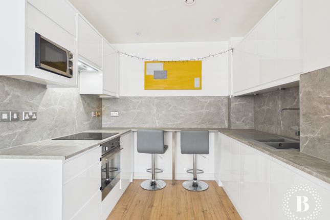 Internally, the apartment offers a bright and spacious open-plan living, kitchen, and dining area, flooded with natural light and providing a comfortable and versatile living space. The modern kitchen is well-equipped with integrated appliances including a fridge freezer, oven, and hob, along with space for a washing machine.
