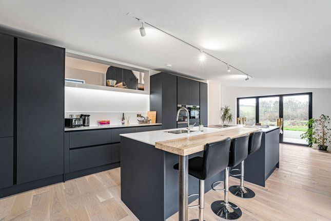 The kitchen is fitted with a comprehensive range of contemporary units with integrated appliances, stone-effect worktops and tiled flooring. Beams add warmth and character, while generous workspace and an adjacent dining area make this a practical and sociable room.