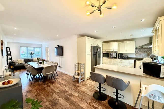 The heart of the home is the modern fitted kitchen, complete with ample worktop space, integrated appliances and a central island, creating a practical and sociable environment. The kitchen flows seamlessly into the reception area. Kitchen area also benefits from direct access to the garden. A separate utility room is conveniently positioned next to the kitchen, and a downstairs WC located off the hallway adds further practicality.