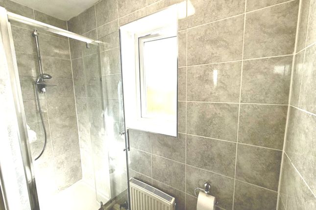A modern finish shower wet room with WC whb and double glazed window to rear elevation.