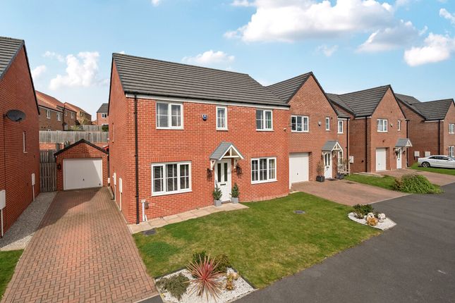 The accommodation briefly comprises a welcoming entrance hall leading into an extended open plan kitchen and living space, designed for modern living. There are three well proportioned bedrooms, two of which are served by a Jack and Jill bathroom, in addition to a separate family bathroom. Externally, the property benefits from low maintenance gardens to both the front and rear, along with two driveways providing ample off road parking and a detached double garage leading to a store room.