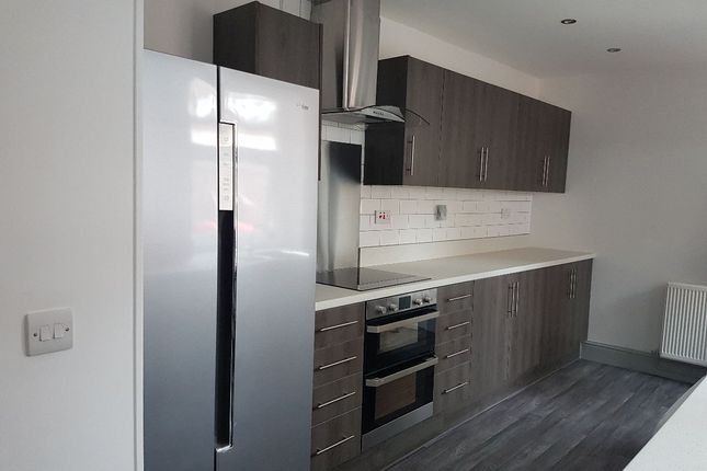 UPVC double glazed window to the rear elevation. UPVC double glazed window to the side elevation. Features a range of eye and base level units with contrasting work surfaces over. Tiled splash backs. One and a half bowl composite sink and drainer unit with mixer tap. Integrated electric double oven and four burner gas hob with extractor hood over. Space and plumbed for a washing machine. Space for under counter fridge and freezer.