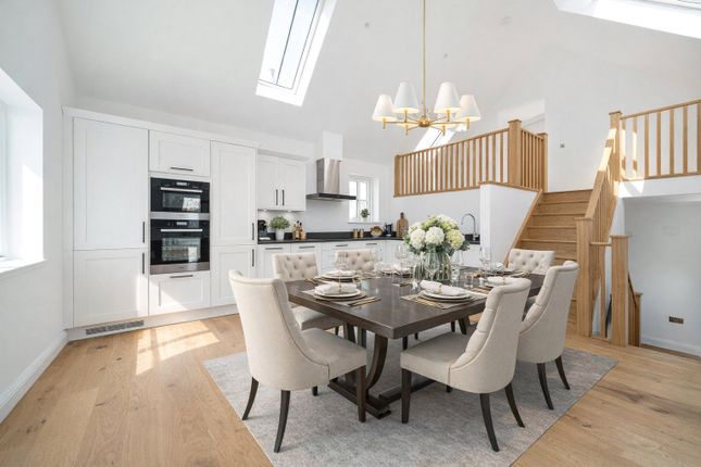 An entrance hall leads through to the principal rooms, with a WC and useful utility room also found at this level, the latter including a washing machine and tumble dryer. The sitting room is a generous and comfortable reception space with a log burner as its focal point, with a separate dining room alongside. The kitchen diner is fitted with shaker units, wood worktops, an eye level oven and hob, a breakfast bar and space for freestanding appliances. The conservatory is a wonderful additional reception space, enjoying double doors opening directly outside.