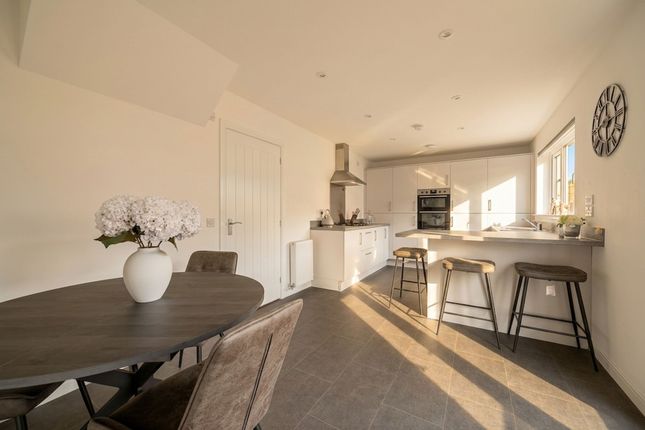 Designed for comfortable family living, the ground floor features a spacious lounge flowing into a formal dining area, with direct access to the rear garden. A sizeable contemporary kitchen is complemented by a practical utility room, alongside a dedicated home office and a convenient WC. Upstairs, the generous accommodation includes four double bedrooms. The principal bedroom boasts a luxurious en-suite bathroom, while a second bedroom benefits from its own en-suite shower room. A stylish family shower room completes the layout.