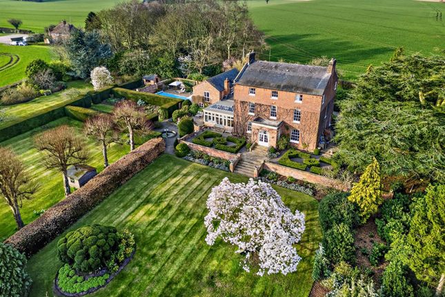 An opportunity to purchase an imposing large detached barn conversion situated in an idyllic position nestled within beautiful rolling countryside affording the most wonderful views across surrounding farmland towards woodland and offering immaculately presented accommodation comprising a splendid entrance hall and landing, two excellent reception rooms, impressive kitchen/dining/family room, study, cellar/wine/store room, utility, master bedroom suite with dressing area and ensuite, four further bedrooms (two with ensuite), large rumpus playroom/sixth bedroom, big family bathroom, library area, integral triple garage, and a separate converted former cart barn containing store room, game room and wet room spaces, together with manicured grounds extending to approximately 1.7 acres with the long tarmac driveway approach and including a fenced gardeners’ enclosure and greenhouse, extensive landscaped paving and a rear decking area.